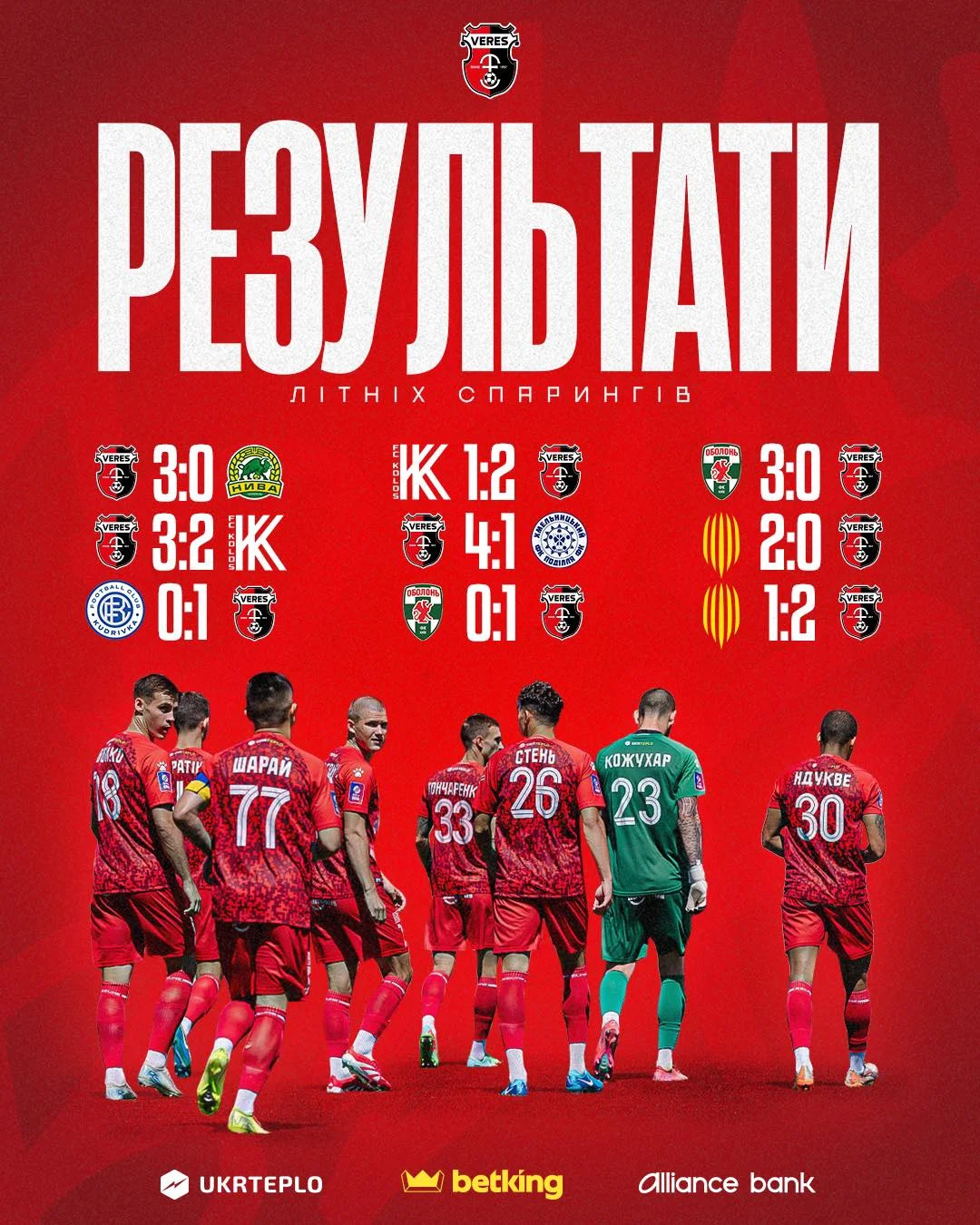 Верес: Горох – Стамуліс, Гончаренко, Вовченко, Сміян – Харатін, Куція – Стень, Бойко, Шарай – Ндукву