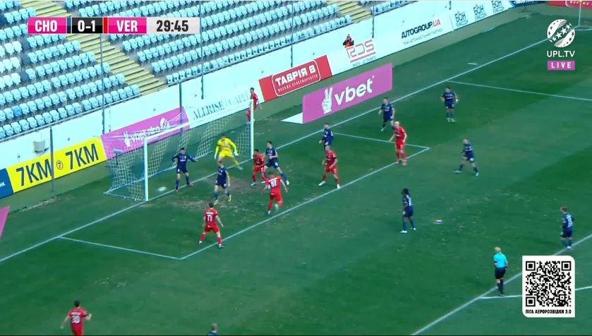 Другий тайм "моряки" почали значно краще. Господарі могли забивати вже за три хвилини по перерві, коли Бойчук накинув на дальню стійку, а Єрмаков завдав удару головою. Вийшло занадто високо. На 55-й же Васильєв пробивав головою метрів з п'яти, замикаючи подачу Бадібанги – м'яч летів під ліву стійку, однак Паст врятував Верес!