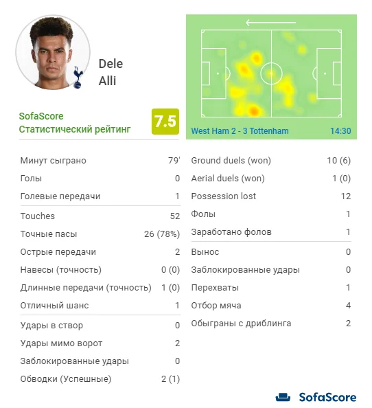 Гравцем матчу прогнозовано став Сон Хин Мін. Кореєць записав до свого активу гол+пас і загалом часто опинявся в епіцентрі подій. Та провідну роль у складі "шпор" португальський керманич відвів саме Аллі. Англієць виконав величезний обсяг роботи, граючи між лініями, та доклався до двох голів із трьох. Прикметно, що хавбек був корисним і в оборонних діях. У нього 1 перехоплення та 4 відбори. А точність його передач склала хороші 78 %. Теплова карта Деле говорить сама за себе. Моурінью перед матчем віддав перевагу Аллі перед Еріксеном. Вочевидь, Особливий своїм вибором задоволений.