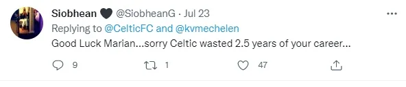 "Пам'ятатиму його гол у виїзному матчі з Нимме Калью". "Талант, зруйнований Ленноном", "Черговий виконавець, який не закріпився, не отримавши бодай шансу проявити себе. Успіхів". "Вийшов у матчі ЛЧ, забив чудовий гол і зник. Не розумію, що з ним сталося. Це мав бути чудовий трансфер". "Бувай, Мар'яне. Пробач, що Селтік зіпсував 2,5 роки твоєї кар'єри", – теж одні із найпопулярніших постів.