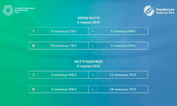 Згідно з календарем змагань, матчі плей-офф відбудуться 4-го й 8 червня поточного року. Цікаво, що в обох стартових матчах господарями будуть команди з УПЛ.