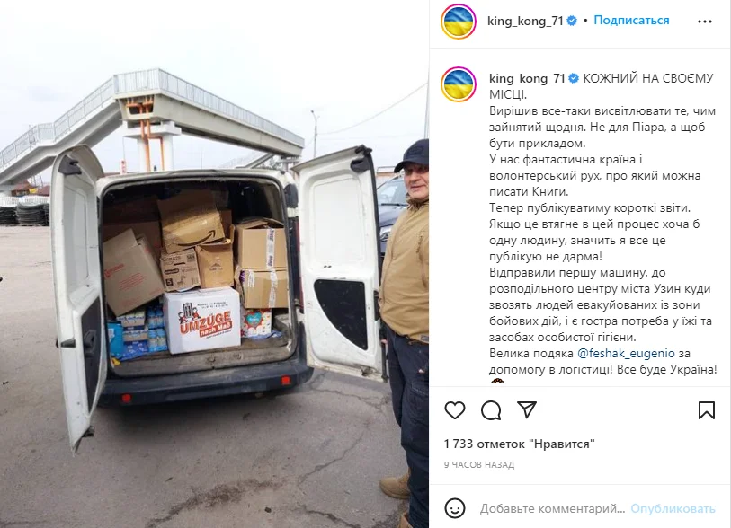 "Вирішив все-таки висвітлювати те, чим зайнятий щодня. Не для піару, а щоб бути прикладом. У нас фантастична країна і волонтерський рух, про який можна писати книги.