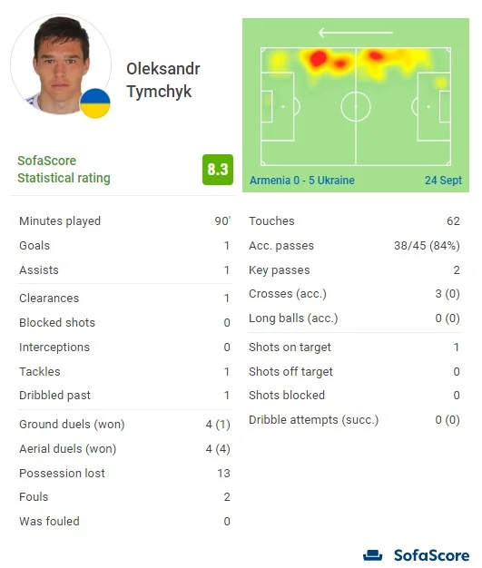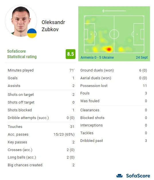 Петраков також повторив Шевченка. Найбільша перемога Шеви-тренера – ті самі 5:0, у матчі проти Сербії. Зубков зіграв матч життя у збірній, якщо говорити про атаку та реалізацію. Раніше Сашко по разу відзначався голом і асистом, а тут відразу 1+2, що більше, ніж за попередні 22 матчі за національну команду. Створив 2 стовідсоткові моменти, в обох випадках виводячи партнерів на порожні ворота. Зіграв дуже мудро. Де треба, Зубков брав на себе, в іншому ж проявив альтруїзм, хоча в моменті з другим асистом, мабуть, все ж бив сам. Єдине, що занизило оцінку, повний провал з єдиноборствами (0 виграних з 6). Тимчик уперше забив, як й Ігнатенко, який до того ж став лідером за кількістю виграних єдиноборств (10 з15) і відбирань (3 з 6). Матвієнко, по суті, віддав дебютний гольовий пас, хоча там вирішував індивідуальний скілл Довбика.