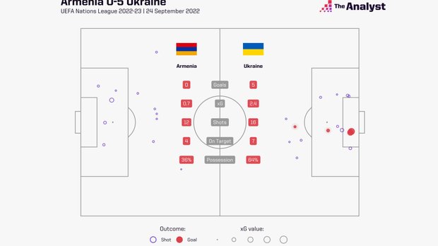 Вірменія програла Україні (0:5) в рамках 5 туру Групи B1 Ліги націй 2022/23. Рахунок і огляд матчу – на "Футбол 24".