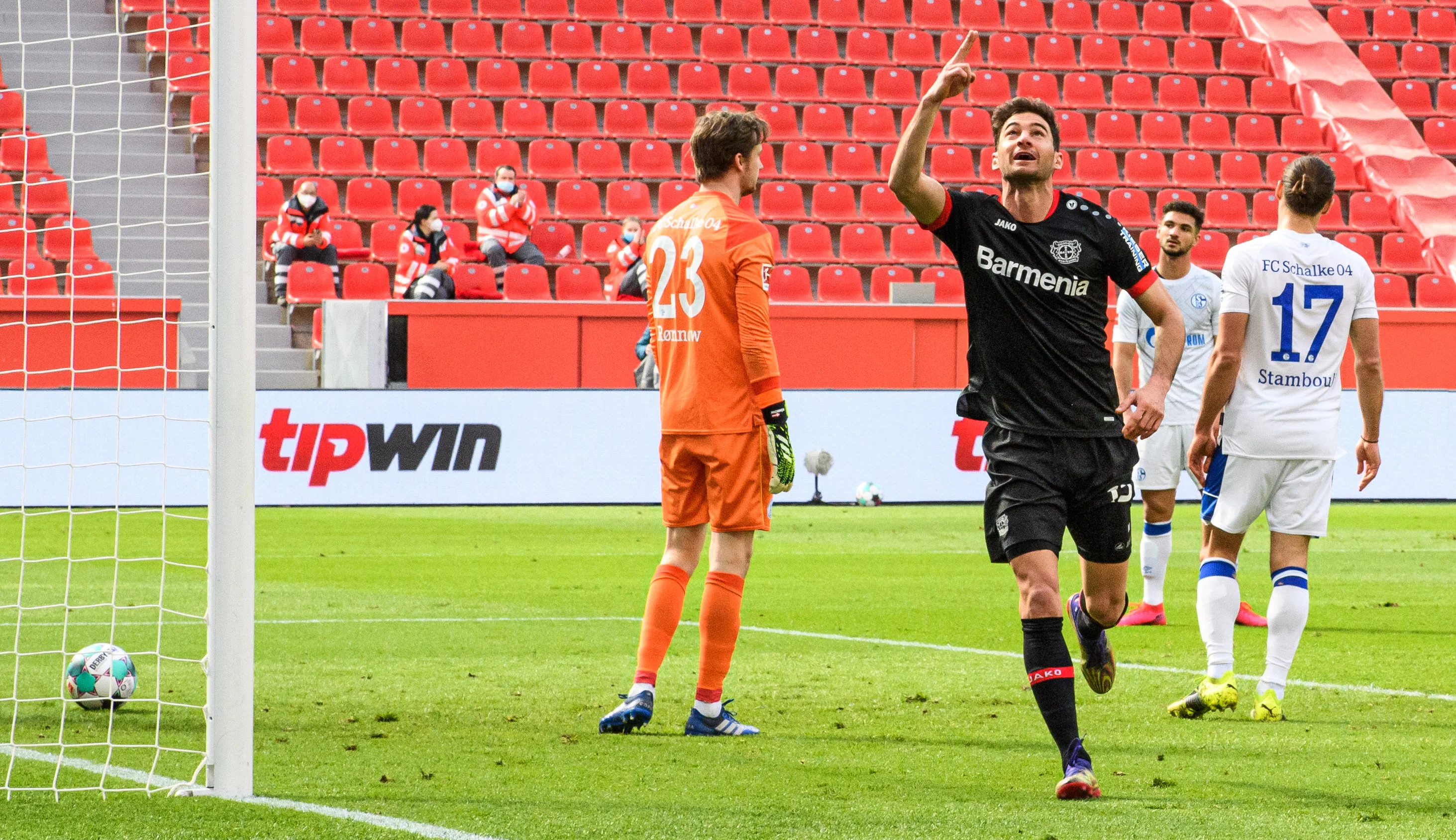 Шальке у матчі з Байєром тримався до середини тайму, допоки прострільну передачу Каріма Демірбая на дальню штангу влучно не замкнув Лукас Аларіо. По перерві Клас-Ян Хунтелаар зрівняв, однак VAR зафіксував офсайд. Згодом Патрік Шик чудовим ударом в дальній кут з лінії штрафного майданчика збільшив перевагу "фармацевтів" до двох голів. Однак, Хунтелаар не заспокоївся і під кінець матчу таки забив свій гол.