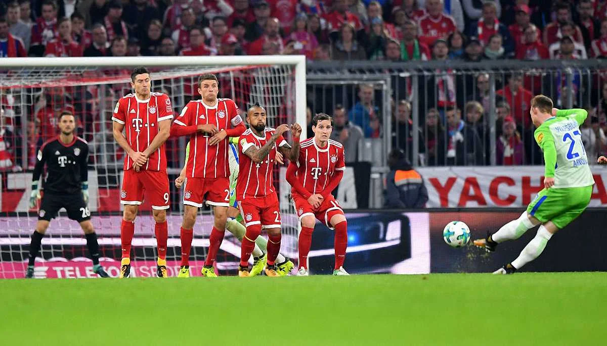 Матч двох непоступливих команд на "Альянц-Арені" завершився результативною нічиєю. Рахунок у протистоянні відкрили на 33 хвилині після того, як Тіссеран порушив правила проти Лєвандовскі у штрафному майданчику, і польський нападник майстерно реалізував пенальті. А перед свистком арбітра на перерву голом у ворота Вольфсбурга відзначився Роббен. 33-річний нідерландський півзахисник пробив з лінії штрафного майданчика і завдяки рикошету подвоїв перевагу господарів поля.