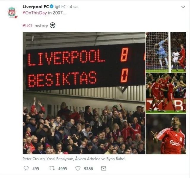 За 15 хвилин, які залишалися до кінця матчу, Бешикташ встиг пропустити ще три голи. Дубль Бабеля, другий гол Крауча та парочка асистів нестримного в той вечір Бенаюна. Отак Ліверпуль став першою командою за всю історію, яка здобула перемогу в матчі Ліги чемпіонів з рахунком 8:0. Досі ніхто не зміг побити цей рекорд. Реал лише повторив цей результат через вісім років. Цікаво, що на тренерській лаві мадридців тоді також був Рафа Бенітес.
