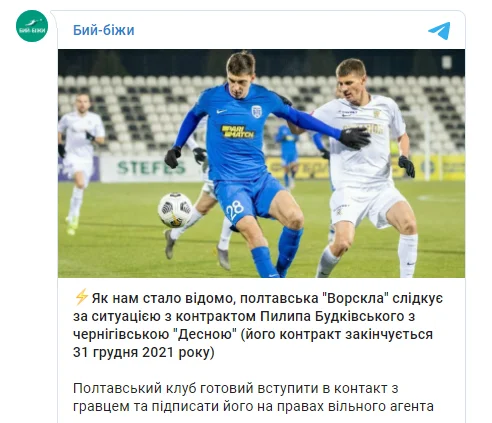 Форвард Десни Пилип Будківський може продовжити кар'єру у Ворсклі, повідомляє Telegram-канал "Бий-біжи".