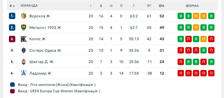 Полтавська Ворскла стала чемпіоном України з футболу серед жінок у сезоні 2024/25. За тур до фінішу полтавки йшли першими у таблиці й мали у своєму доробку 49 очок, випереджаючи Металіст 1925 на три пункти. Для здобуття титулу підопічним Ії Андрущак треба було не програти Шахтарю.
