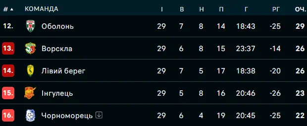 А от поразка відправила б Ворсклу в Першу лігу незалежно від результату паралельної зустрічі. Там Лівий Берег проводив дербі з Оболонню – їх розділяли три очки. У разі витяги над "пивоварами" новачок УПЛ піднявся б над зоною перехідних матчів, опустивши туди команду Сергія Шищенка.