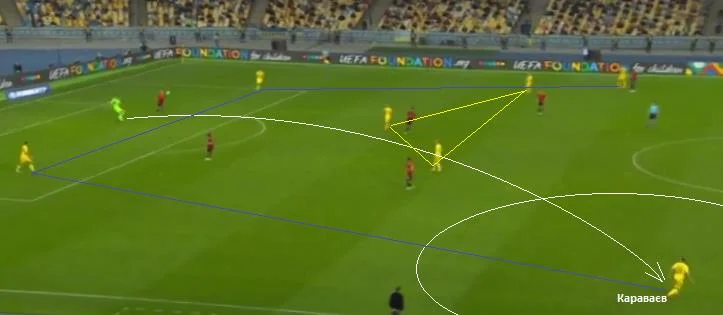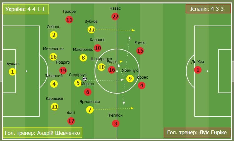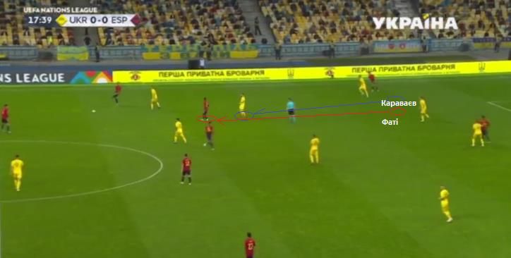 Ще одним дуже важливим моментом у діях команди Андрія Шевченка були фланги. Тренери збірної України зробили висновки з першої гри цих команд у Мадриді, коли індивідуальні якості Фаті на лівому фланзі, за великим рахунком, і зробили результат. Тоді на поталу вундеркінду був кинутий Тимчик. Цього разу була підстраховка.