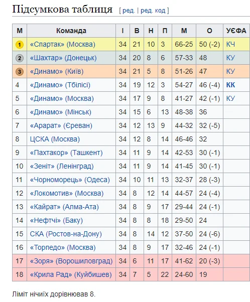 У той час ще діяв горезвісний ліміт нічиїх. Команда не отримувала очок за кожну зіграну "понад ліміт" нічию. У нас така понадлімітна нічия трапилася з московським Спартаком, з яким ми в 30-му турі зіграли у Ташкенті (1:1). Для Спартака, по-моєму, та нічия теж була понадлімітною. Обидві команди не заробили очок. Але ми ні в чому не поступилися москвичам, які в тому сезоні стали чемпіонами країни. Відігралися після пенальті в наші ворота. Та й в інших іграх демонстрували досить цікаві фрагменти гри.
