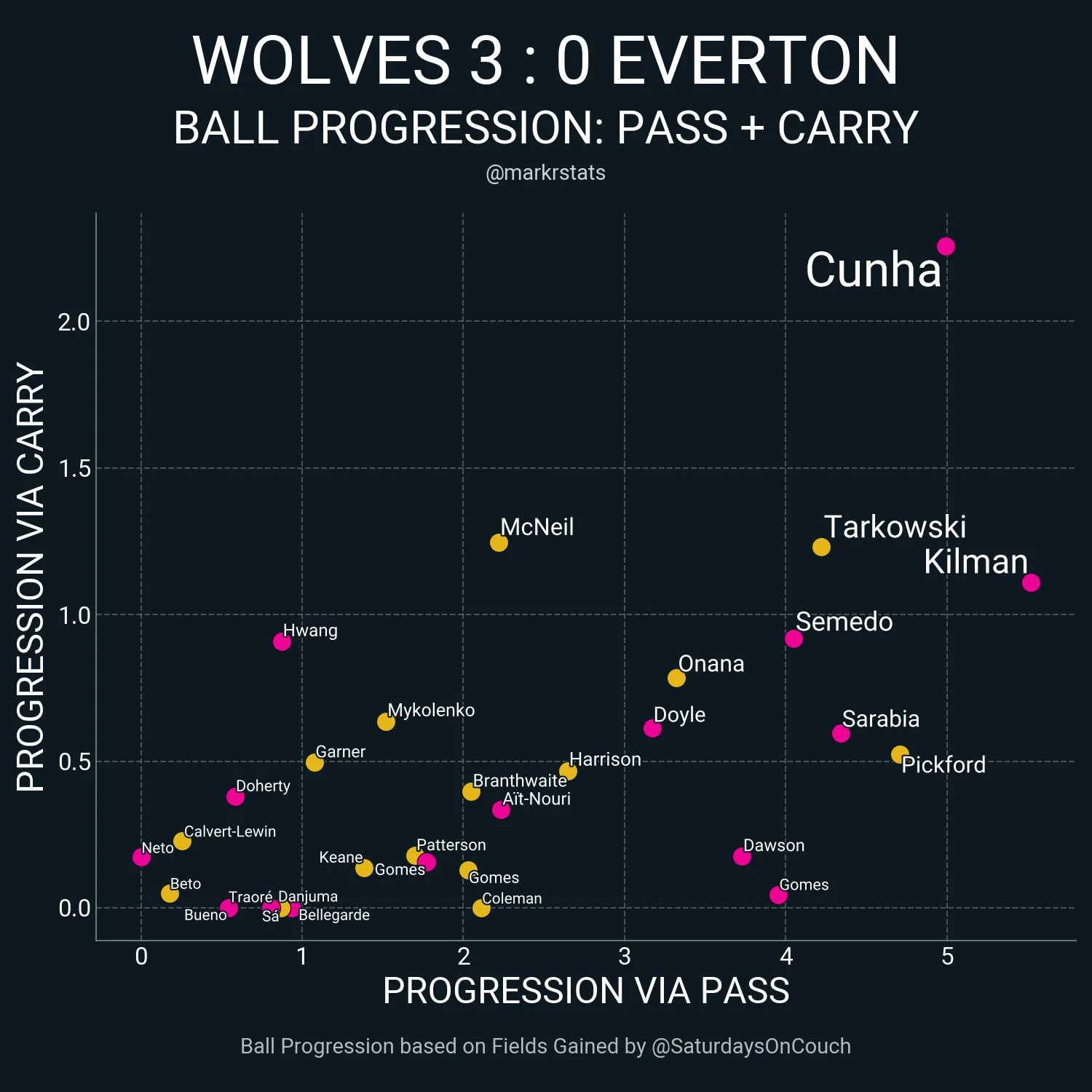 Водночас відзначаємо, як майстерно Віталія, як і будь-кого в обороні гостей, відігрували через комбінації. Гарі О'Ніл, колишній тренер Забарного у Борнмуті, під час перегляду повторів моментів на моніторчику біля тренерської лави не приховував задоволеної посмішки навіть у моментах, коли його підопічні пробачали суперника. Комбінаційно "вовки" мали бездоганний вигляд. Евертон давно так ніхто не возив.