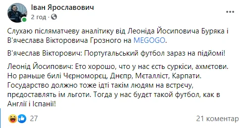 Натомість шоумен і давній футбольний уболівальник Ігор Кондратюк відверто поглузував із горе-форварда Динамо.