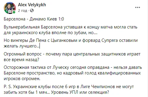 "Футбол 24" зібрав думки експертів за мотивами матчу 3-го туру ЛЧ Барселона – Динамо (1:0).