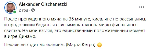 І знову український вболівальник без грама позитивних емоцій. Динамо програло кризовій Барселоні, продовживши чорну серію наших клубів у єврокубках. До такого стану речей починаєш звикати...