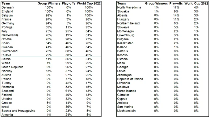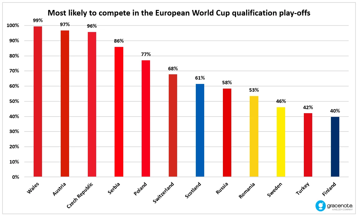 Навряд чи тут криється абсолютно непрохідний опонент, хоча Швеція і Швейцарія, а також потенційно Австрія (за квотою з Ліги націй) виділяються. Але й двох перших ми останнім часом, хоч і з великими боями, перемагали. З останніми нам було дуже важко грати на Євро-2020. Хоча є всі підстави вважати футбол Петракова таким, що більше підходить під австрійців, ніж гра з акцентом на контроль від Шевченка, де ми були дуже вразливі під пресингом. Водночас з Росією, яка посідає друге місце у групі з Хорватією через додаткові показники, нас мали б розвести по різних парах. За оцінками Gracenote, найближчий матч проти Фінляндії вирішить для України якщо не все, то дуже багато.