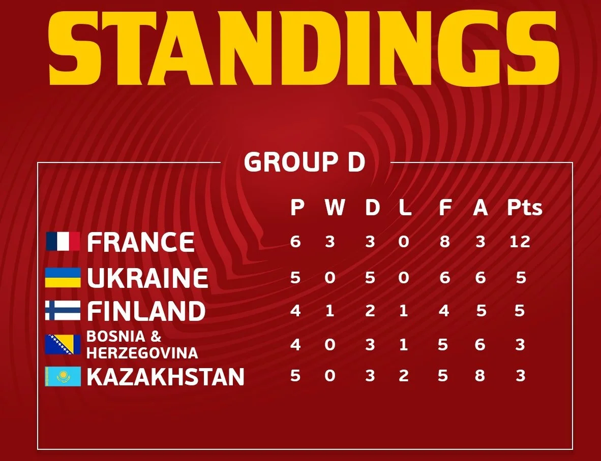 Як ми і прогнозували, матчі з Францією нічого особливо не вирішили. Українці вибороли 1 бал, який аж ніяк не буде зайвим, але команда Дешама все ще дивиться згори вниз над нашою сутичкою. Спокійно перервана серія нічиїх вдома з Фінляндією дозволила відірватися на 7 очок від другого місця. Водночас боснійці, граючи в більшості, урвали лише 1 пункт у двох матчах з "ле бльо". Навряд чи фіни спроможуться на щось більше – аж ніяк не вірю в їхню перемогу над французами 16 листопада. У нас же 2 очки проти лідера групи – в активі. Тож тут маємо ініціативу. І боснійці, і фіни випереджають Україну лише за втраченими очками.