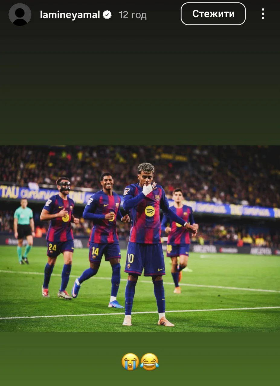 Ламін Ямаль не тільки чудово грає в футбол, а й має хороше почуття гумору. В Instagram він опублікував своє святкування гола, де імітував свисток.