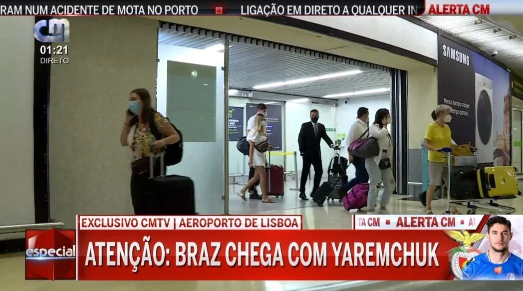 Українця помітили на виході з аеропорту Лісабона у супроводі генерального директора Бенфіки Руї Педро Брази, повідомляє A Bola. Це засвідчує і телеканал CMTV, який і зафіксував Яремчука.
