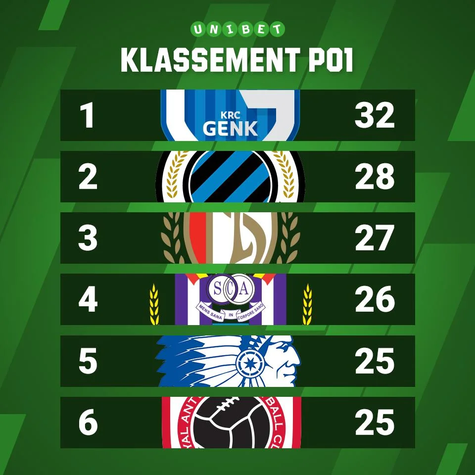 У бельгійському чемпіонаті завершився перший етап – визначилася топ-шістка, яка боротиметься за чемпіонство та єврокубки. У цю компанію потрапили команди українців: Генк Руслана Маліновського, Андерлехт Євгена Макаренка, Антверпен Єгора Назарини та Гент, за який виступають Роман Безус, Ігор Пластун і Роман Яремчук.