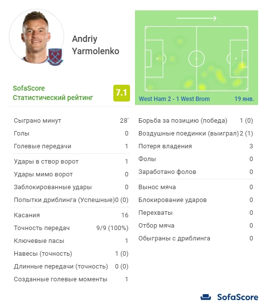 Остання чверть зустрічі виявилась не дуже цікавою. У Вест Хема були два дальніх удари Райса повз ворота, а у Вест Брома був неточний постріл Перрейри та атака з ударом Галлахера метрів з 20-ти – прямо в руки Фабіанскі. Аж на 89-й хвилині "дрозди" створили справжній гольовий момент – це Ферлонг замикав простріл на "11 метрів" ударом повз ліву стійку. Ось, в принципі, і все, що створили команди. Фінальний свисток зафіксував перемогу "хаммерс". Ярмоленко завершив поєдинок з непоганою статистикою передач та високою оцінкою на Sofascore, але після свого удару в середині таймі майже нічим і не запам'ятався.