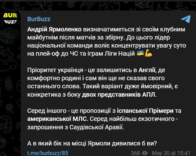 Андрій ухвалить рішення про своє майбутнє лише після матчів збірної України. Зараз Ярмоленко вирішив сконцентруватися виключно на виступах за свою національну команду, якій належить провести щонайменше чотири поєдинки з 1 по 14 червня.