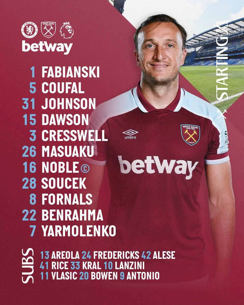 Вест Хем: Фабіанскі – Джонсон, Доусон, Крессвелл – Цоуфал, Нобл, Соучек, Масуаку – Ярмоленко, Форналс, Бенрама.
