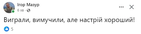 Ігор Мазур, воїн і колишній вожак фан-руху збірної, має хороший настрій.