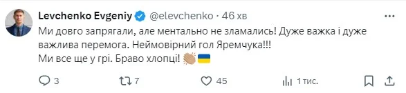 Екс-футболіст та експерт Євген Левченко: довго запрягали, але… Окремі компліменти – для нашого голкіпера.