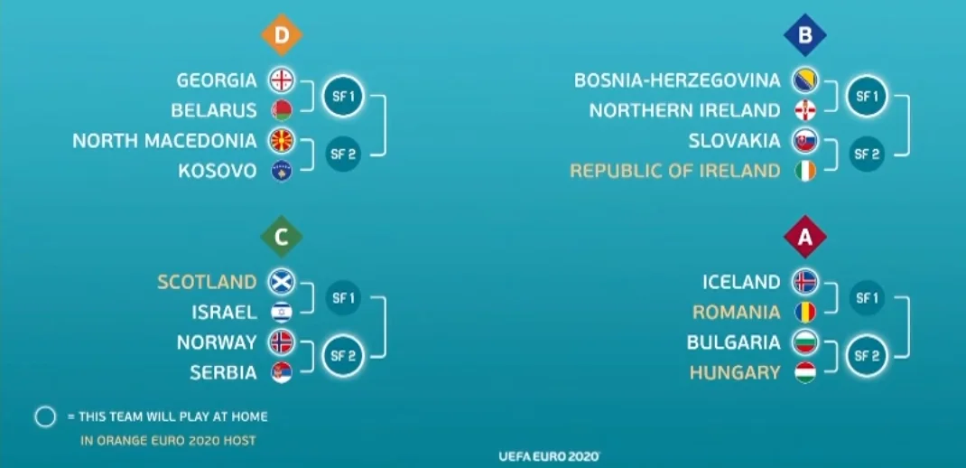 Результати жеребкування матчів плей-офф Євро-2020 – 22 листопада 2019