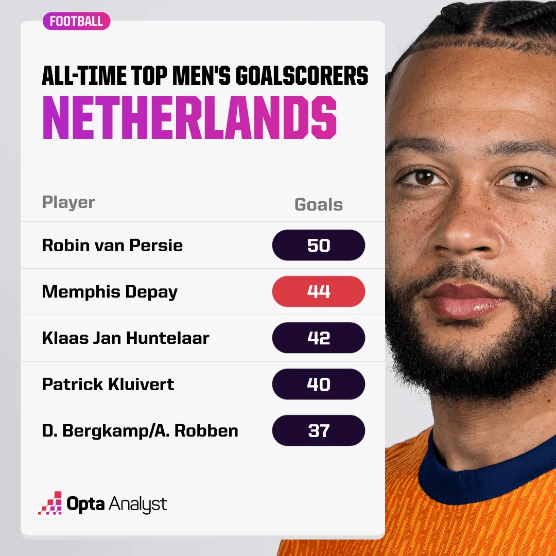 Порівняно з минулими турнірами Нідерланди зазнали невеликих змін у складі. Куман продовжує покладатися на досвідчених гравців: ван Дейка, Мемфіса Депая, Дейлі Блінда. Варто виділити Коді Гакпо і Хаві Сімонса. Останній пройшов академію Барселони, спробував себе у Франції, а минулу кампанію провів у Німеччині, виступаючи за РБ Лейпциг. Враховуючи важкий сезон Депая, від Сімонса будуть чекати голів. Мемфіса не варто списувати. У нього є свої невирішені питання. Депай у своєму активі має 44 забиті м'ячі за національну команду і відстає від ван Персі на шість голів. Євро-2024 – прекрасний шанс вписати себе в історію команди.
