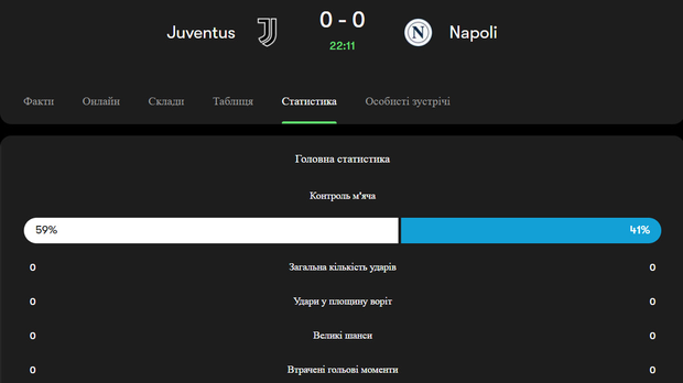 Хоча сьогодні це зовсім не було показником. Ювентус помітно переважав суперника у володінні, але який сенс. Ударів же не було! Хіба для статистики – скоріше навіс від Їдіза прямо в руки Капріле. Куди більше емоцій на стадіоні викликав момент, коли кіпер Наполі взяв до рук м'яч після чи то відскоку, чи то передачі від Олівери. Мотта так вимагав призначити вільний удар, що аж жовту заробив.