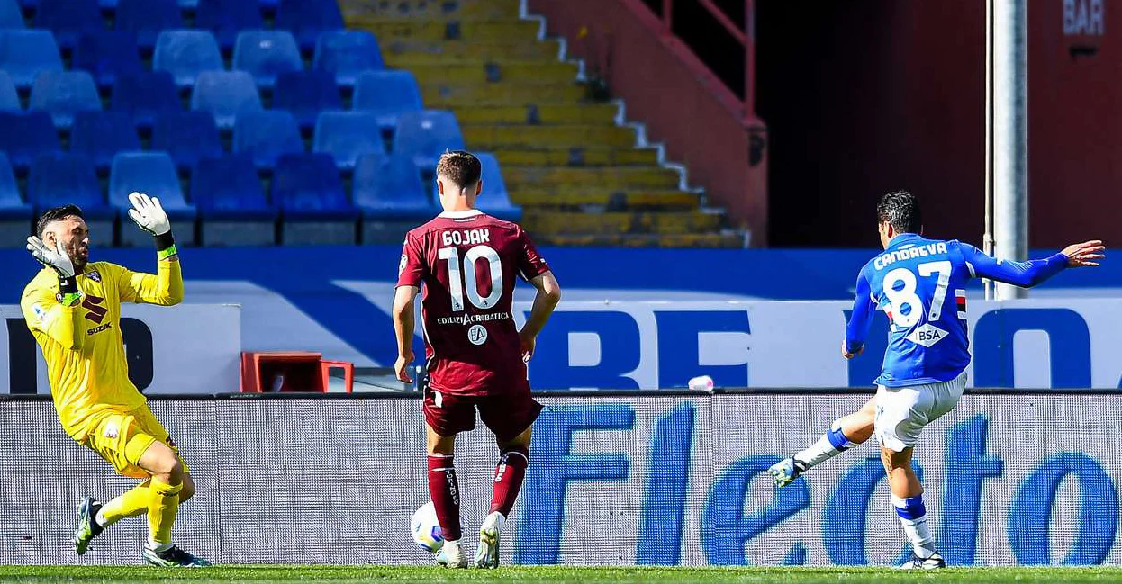 Середняк турнірної таблиці Серії А Сампдорія приймала на власному полі Торіно. Підопічні Клаудіо Раньєрі дуже сподівались у домашньому матчі з аутсайдером перервати п'ятиматчеву безвиграшну серію. Натомість "бики", після драматичної перемоги над Сассуоло, з хорошими емоціями і вірою в себе прибули на Луїджі Ферраріс. Альбін Екдаль вже на початку матчу втратив розкішну можливість вивести господарів вперед – після його пострілу сфера просвистіла у лічених сантиметрах від лівої стійки. З поперемінним успіхом у боротьбі за центр поля команди дотягнули до середини першого тайму, аж поки "блучерк'яті" не розігнали розкішну атаку. Перепасовуючись, генуезці легко добрались до штрафного майданчика суперника і Антоніо Кандрева з району одинадцятиметрової позначки прошив Сальваторе Сірігу. Другий тайм пройшов без голів, що дозволило Сампдорії піднятися на десяту сходинку турнірної таблиці Серії А.