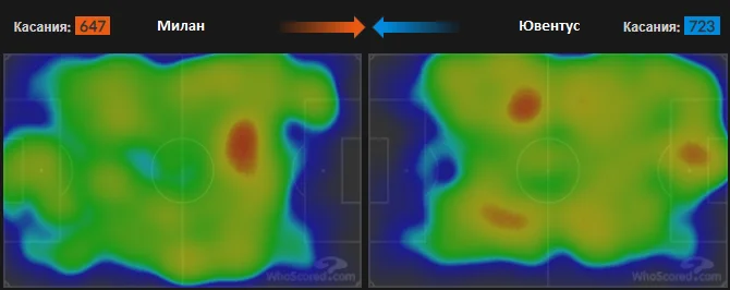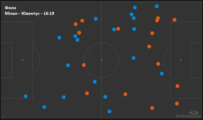 Подивіться, де фолили команди. У Мілана жодного порушення на своїй третині поля. У Юве, навпаки, більше половини фолів у своїй першій зоні.