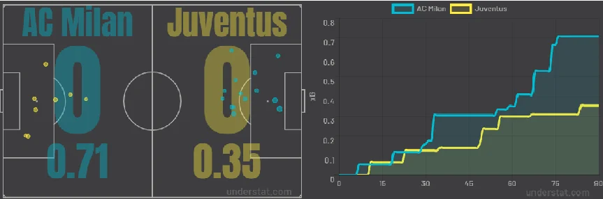 Основні статистичні дані кажуть про більш ефективну гру господарів поля в атаці. Мілан більше бив по воротах. Ювентус узагалі жодного разу не влучив у площину воріт. Це показові дані. Цифри, які відображають очікувані голи та очки, малюють досить об'єктивну картину гри. Гості непогано руйнували, але були занадто передбачуваними у своїх атакувальних діях.