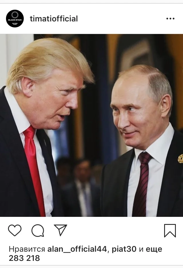 Фотографію Тіматі з Путіним також "лайкнули" Микола Шапаренко, Олег Верняєв та донька Андрія Павелка Анастасія.