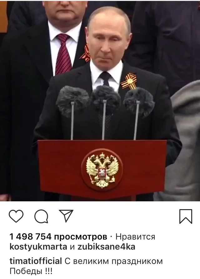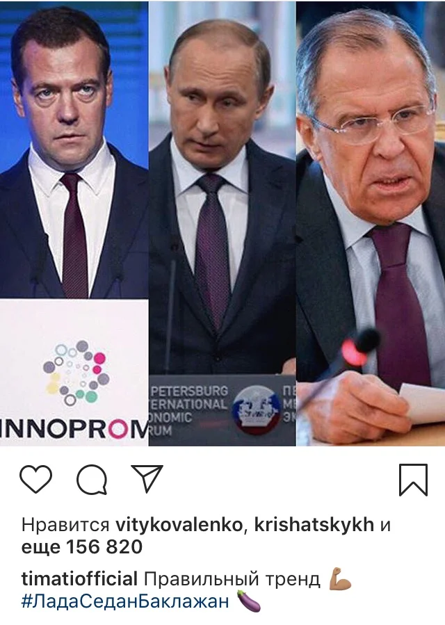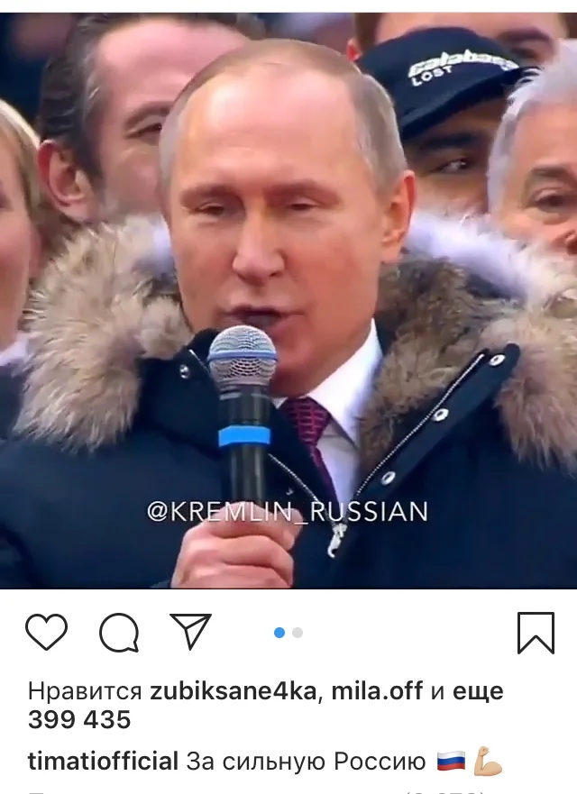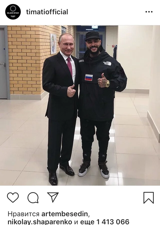 Не тільки Артем Бєсєдін відзначився "лайком" під фотографією Тіматі з Володимиром Путіним.