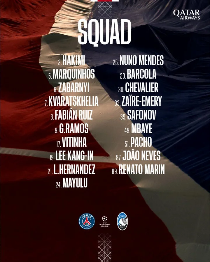 Тренер ПСЖ Луїс Енріке визначив список футболістів, які зможуть взяти участь у матчі першого туру основного етапу Ліги чемпіонів проти Аталанти.