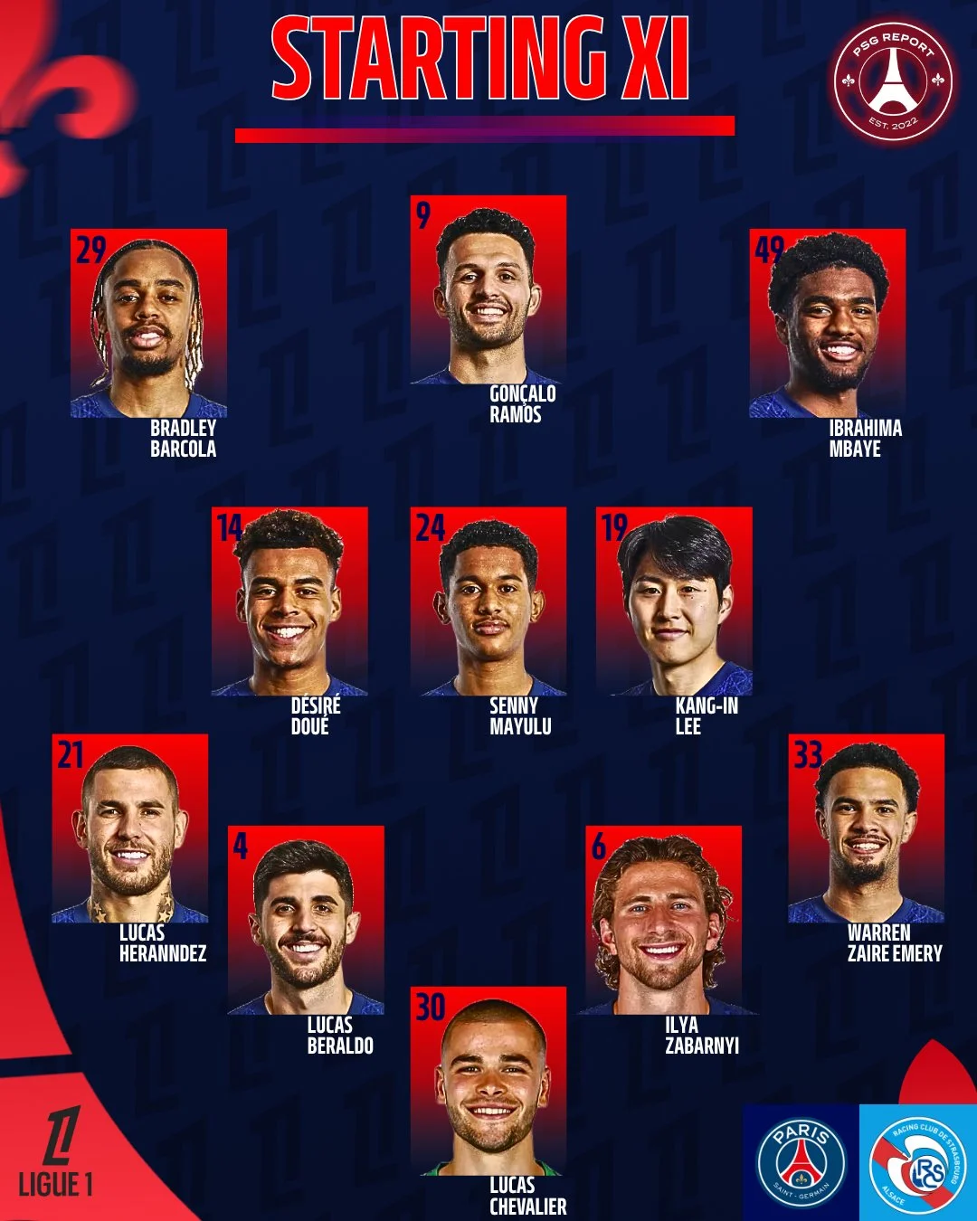 Із позитиву слід відзначити камбек Дезіре Дуе, якого одразу ж розташували в старті. Йому довелося зіграти проти молодшого брата – Гели Дуе. До речі, у попередньому турі ПСЖ пропустив гол від молодшого брата Мбаппе, якому вдалося вирвати нічию на очах Кіліана. Публіка очікувала паралелей – але краще б в основі вийшов Соболь. Українець залишився в запасі ельзасців.