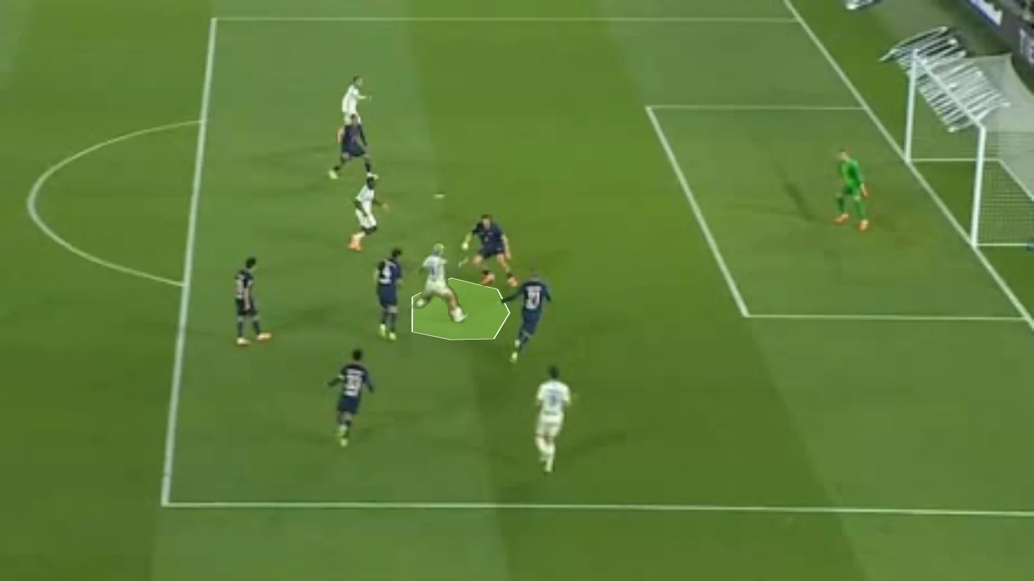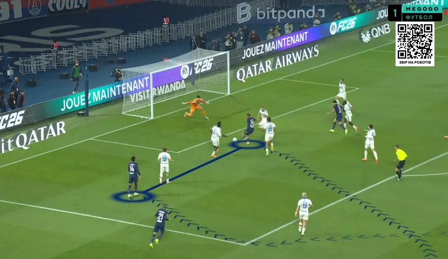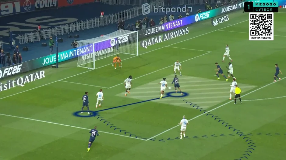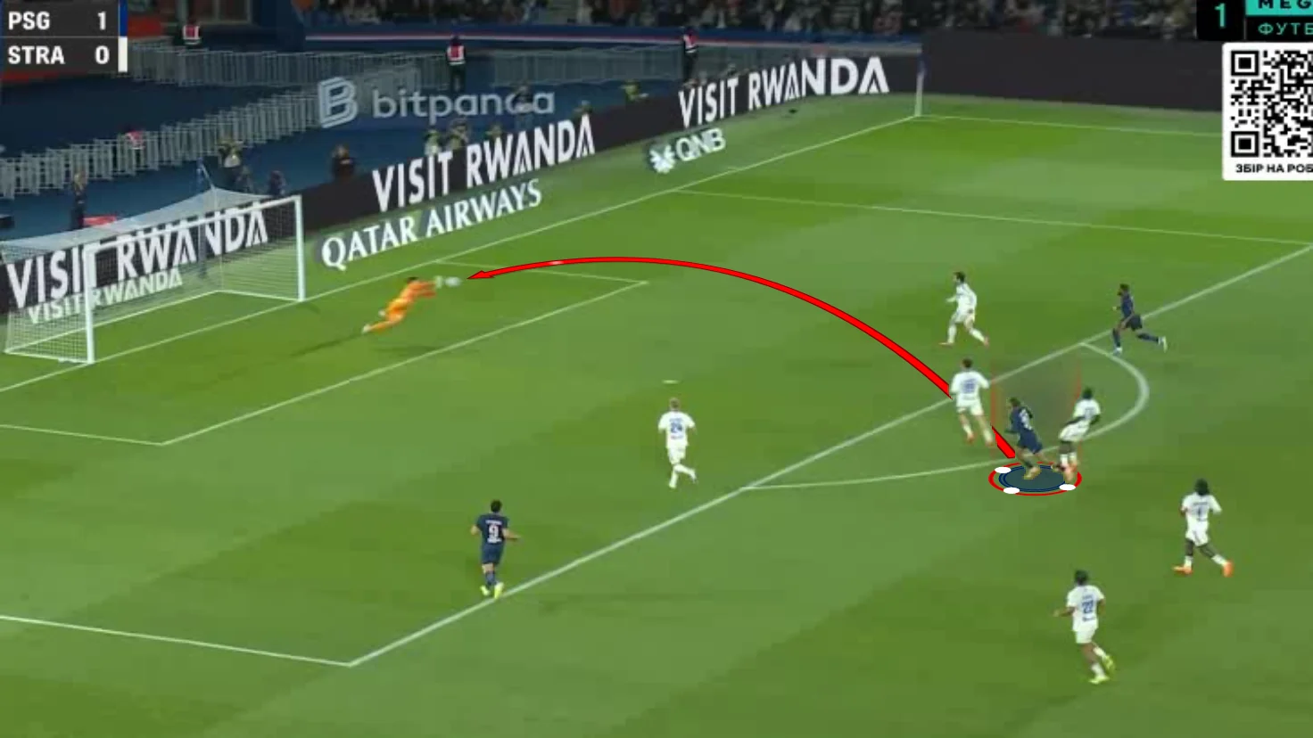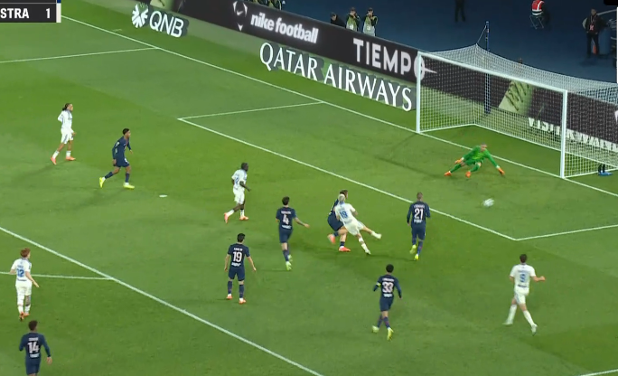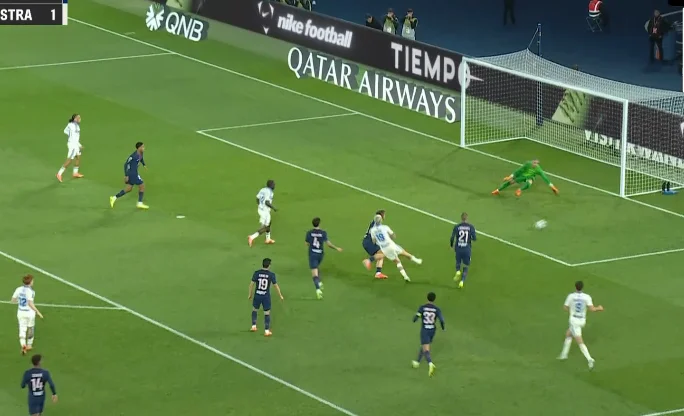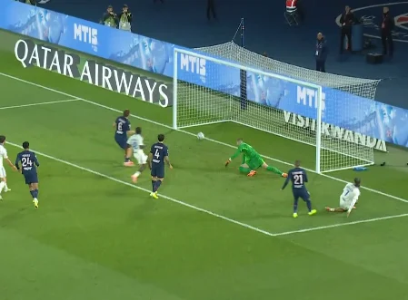 Забарний дав пас поміж лінії на Лі Кан Іна, коли той разом з Маюлу створив 2-в-1 перед кутом штрафного. Кореєць відразу ж віддав проникну передачу, а Маюлу вибіг віч-на-віч – і пробив прямо в Пендерса! На щастя для парижан, нападник зіграв головою на добиванні. 3:3!