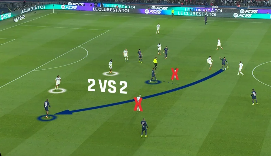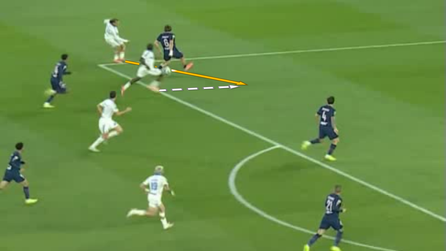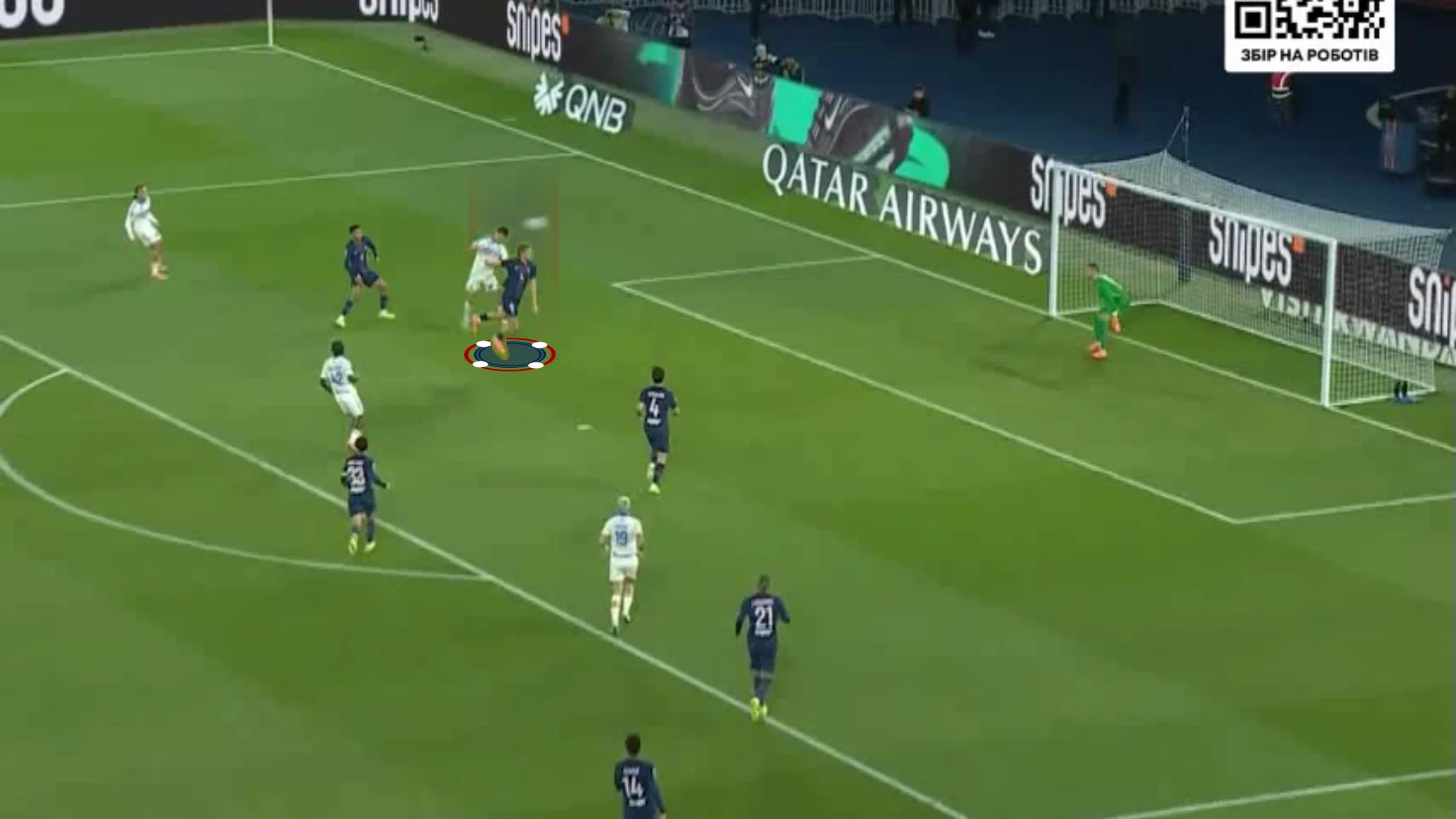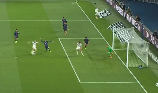 Забарний дав пас поміж лінії на Лі Кан Іна, коли той разом з Маюлу створив 2-в-1 перед кутом штрафного. Кореєць відразу ж віддав проникну передачу, а Маюлу вибіг віч-на-віч – і пробив прямо в Пендерса! На щастя для парижан, нападник зіграв головою на добиванні. 3:3!