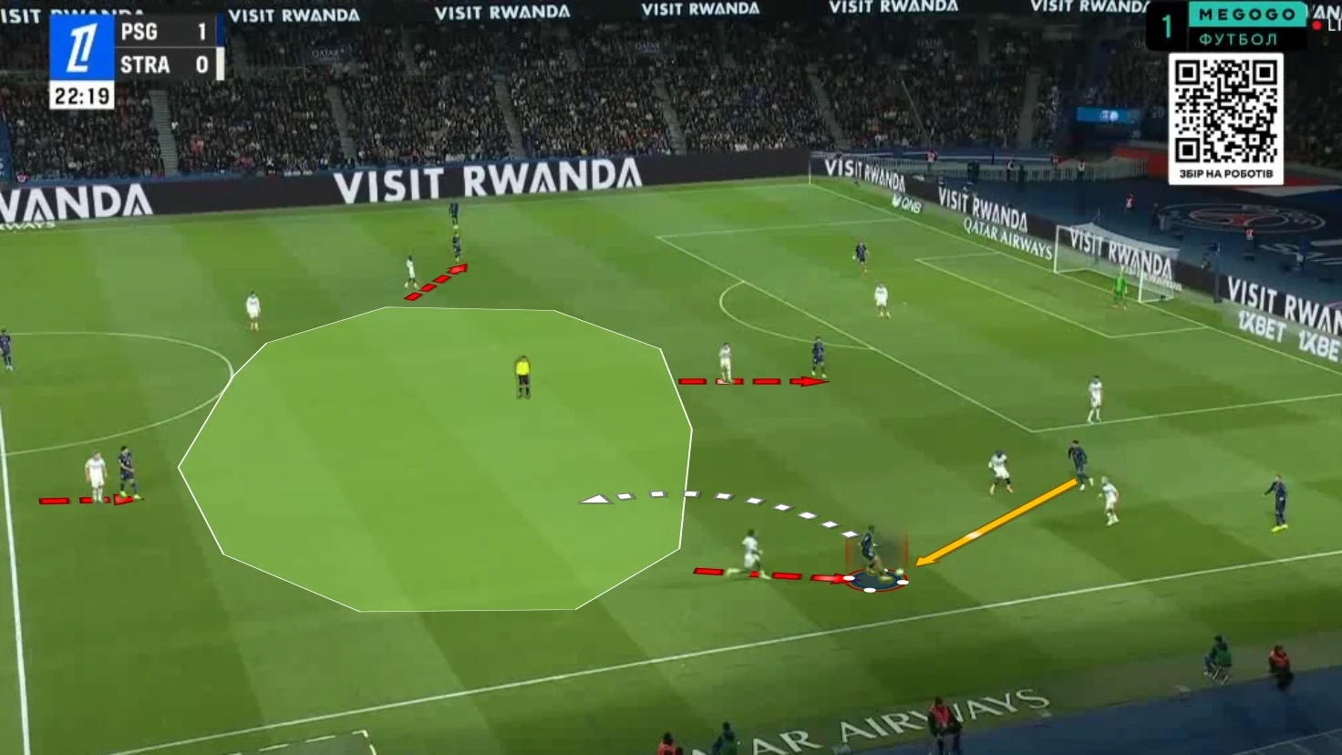 Ще за три хвилини замість Беральдо, Дуе та Барколя з'явились Пачо, Нджанту та Кварацхелія. ПСЖ прогнозовано збільшив оберти, однак моменти посипались аж на 70-х хвилинах. Так, на 72-й Лі Кан Ін зарядив з лінії півкола у праву стійку, а Рамуш зіграв на добиванні – Пендерс врятував Страсбур!