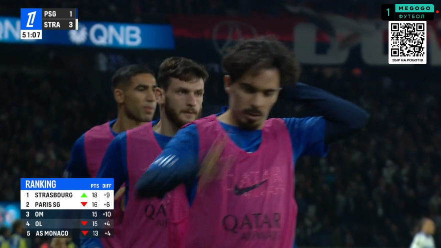 Після такого ляпаса парижани вже не могли бити байдики. Не тільки через статус, а й через ситуацію в турнірній таблиці – ельзасці обходили ПСЖ. Хакімі, Кварацхелія та Вітінья одразу побігли розминатись.