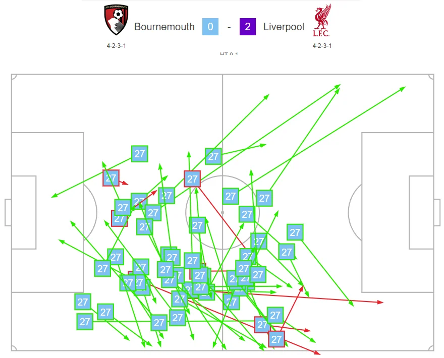 А ще було 4 точних довгих передачі. Один із пасів українця запустив гольову атаку Борнмута, однак взяття воріт скасували через мінімальний офсайд.