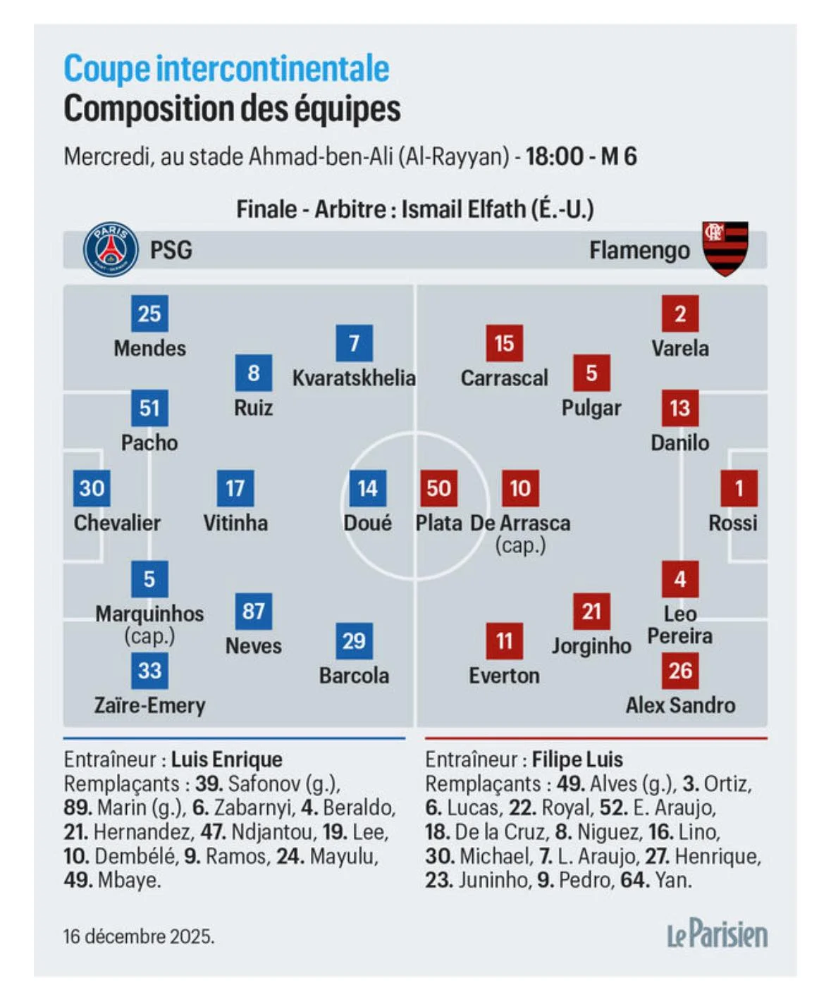 Видання L`Equipe та Le Parisien вважають, що Ілля опиниться на лаві для запасних у грі проти Фламенго. Натомість у стартовому складі ПСЖ вийде пара центрбеків Маркіньйос – Пачо. До слова, в поточному сезоні Ілля Забарний провів 18 матчів за французький клуб та забив один гол.