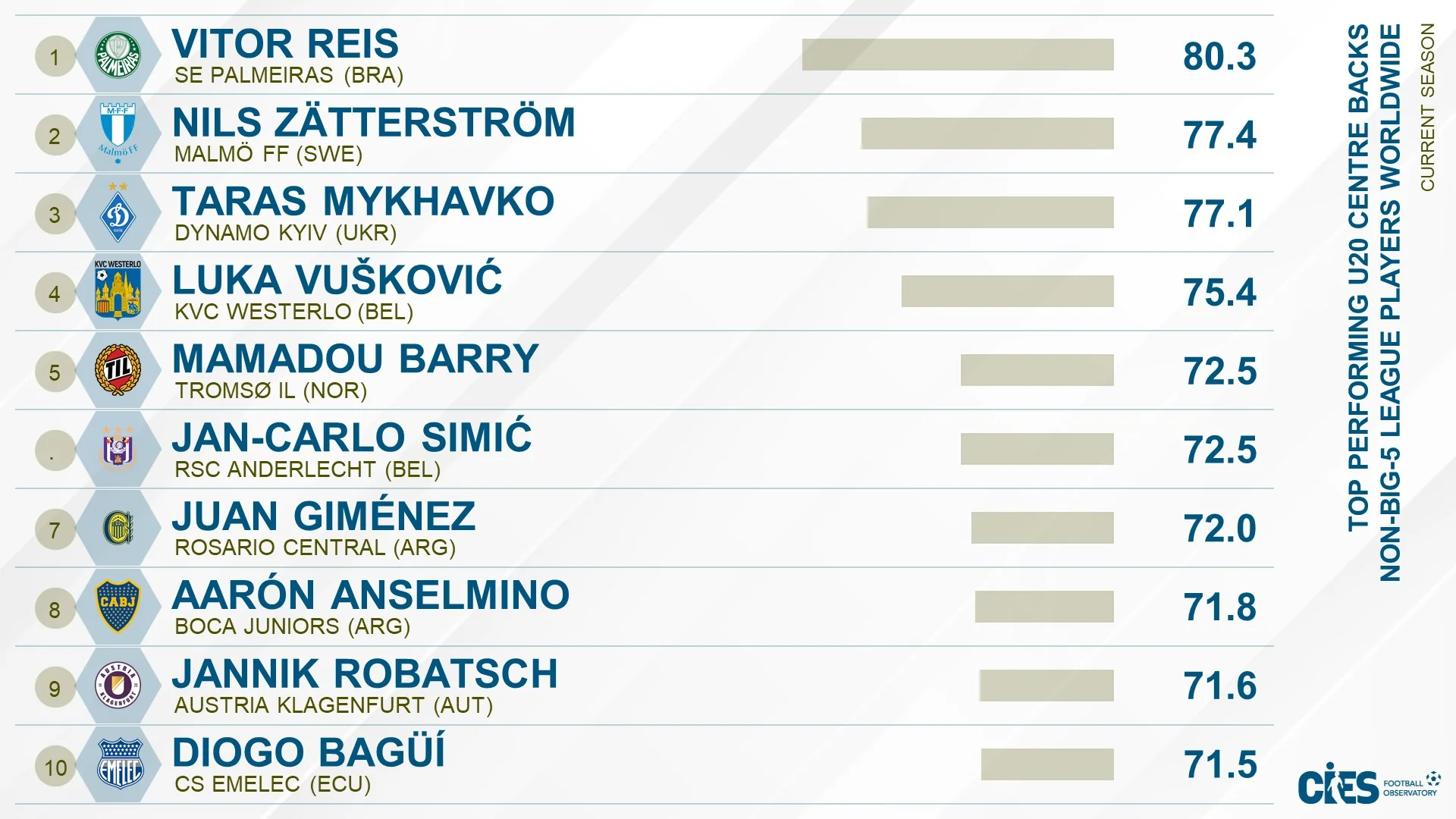 Міжнародний центр спортивних досліджень CIES оприлюднив рейтинг найперспективніших оборонців, за винятком топ-5 ліг.