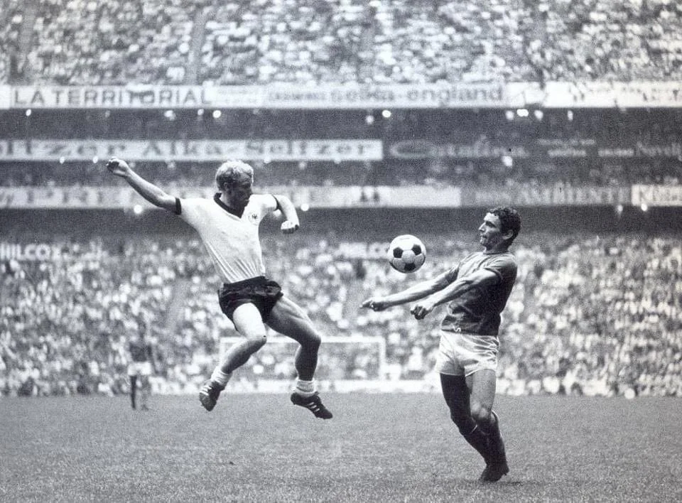 1. Німецький захисник Берті Фогтс (ліворуч) не встежив за італійським нападником Луїджі Рівою лише одного разу – на 104 хвилині. Цього вистачило для голу. Півфінал ЧС-1970, Італія – ФРН – 4:3. Матч століття!