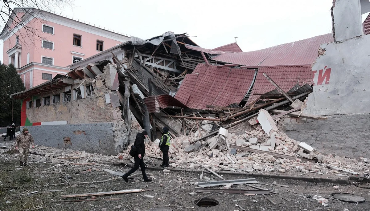 Зруйнований стадіон Локомотива внаслідок обстрілу Києва 23 01 2024 / фото: Віталій Носач