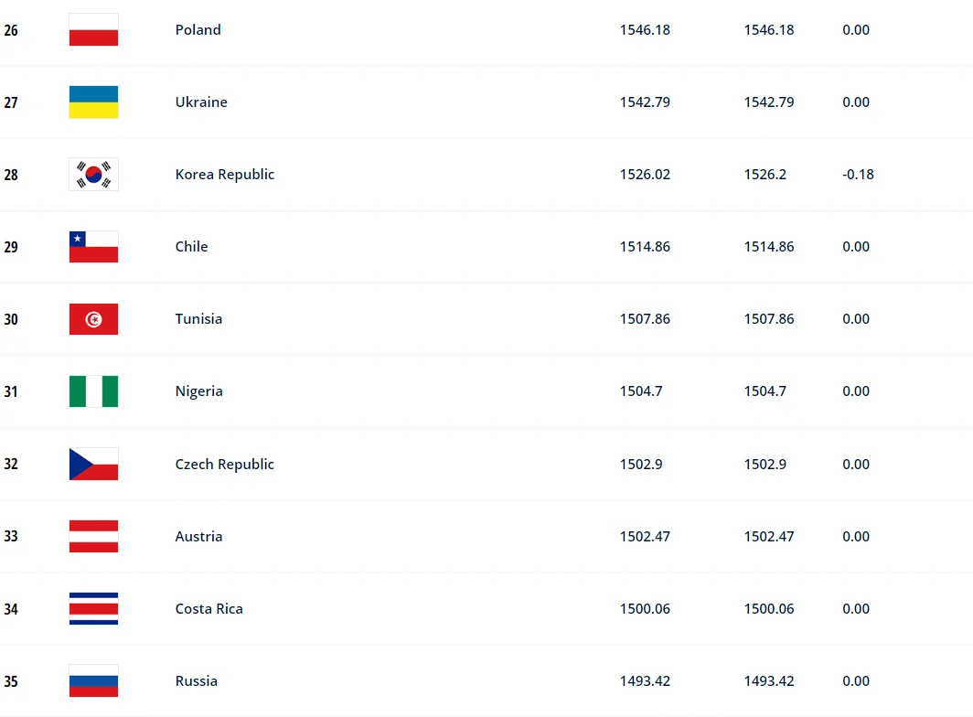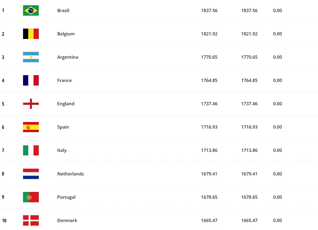 Рейтинг національних збірних зазнав зовсім незначних змін у порівнянні з попередньою версією.
